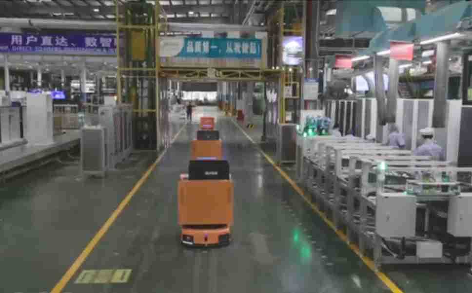 为车载冰箱物流配送打造的智能解决方案,,包含产中物流通过潜伏举升AMR搬运至线边,,,产后成品物流智能仓储,,,流程包含产中物流智能齐套入库,,,,线边安灯叫料AMR智能配送至线边,,,成品入库、、、、出库,,,,通过无人堆高车机器人,,,,智能仓储管理替代人工作业管理,,,,实现更高存储、、、、更高效率、、更具柔性化的解决方案。。。